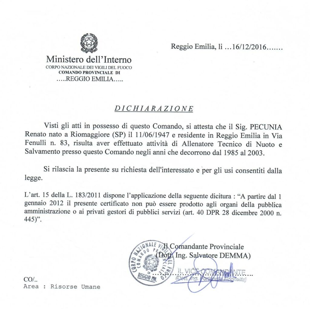 Renato Pecunia, nato a Riomaggiore, è un istruttore qualificato della Federazione Italiana Nuoto (CONI) e anche della Società Nazionale di Salvamento (SNS).